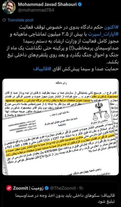 با شکایت صداوسیما دستور توقیف آپارات اسپورت صادر شد