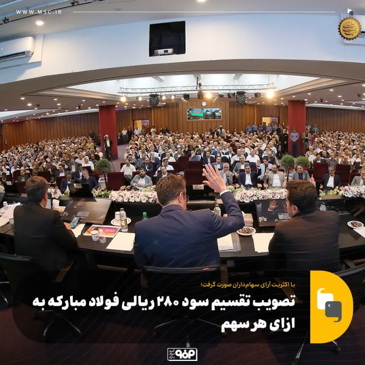 در مجمع عمومی عادی سالیانه منتهی به ۳۰ اسفندماه ۱۴۰۳ شرکت فولاد مبارکه اصفهان، تقسیم سود ۲۸۰ ریالی به ازای هر سهم این شرکت، مجموعاً معادل ۴۲ همت، با اکثریت آرای سهام‌داران به تصویب رسید.