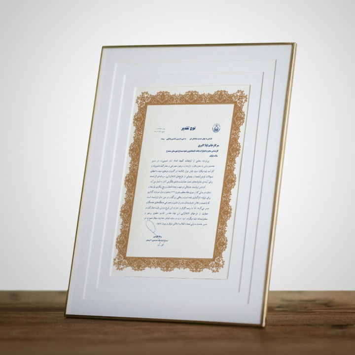در لوح تقدیری که به امضای «رضا طوسی» رسیده، از کوششهای ارزشمند این بانک در جهت ایجاد اشتغال و رفع بیکاری استان در سال «سرمایه گذاری برای تولید» تقدیر شده است.