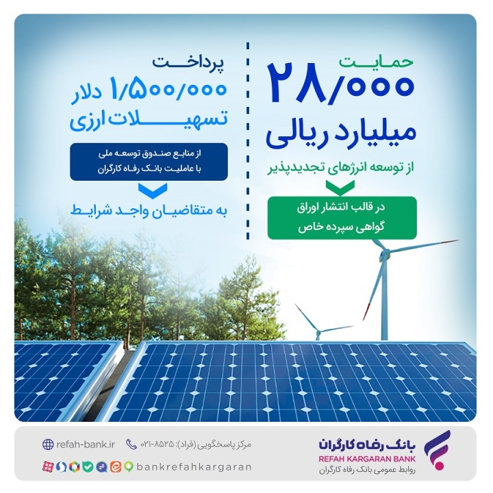 همسو با سیاستهای کلان دولت و با هدف ایفای نقش اثربخش در حوزه مسئولیتهای اجتماعی، تسهیلات بانک رفاه کارگران در بخش انرژیهای تجدیدپذیر از افزایش قابل توجهی در سال 1404برخوردار بوده است.